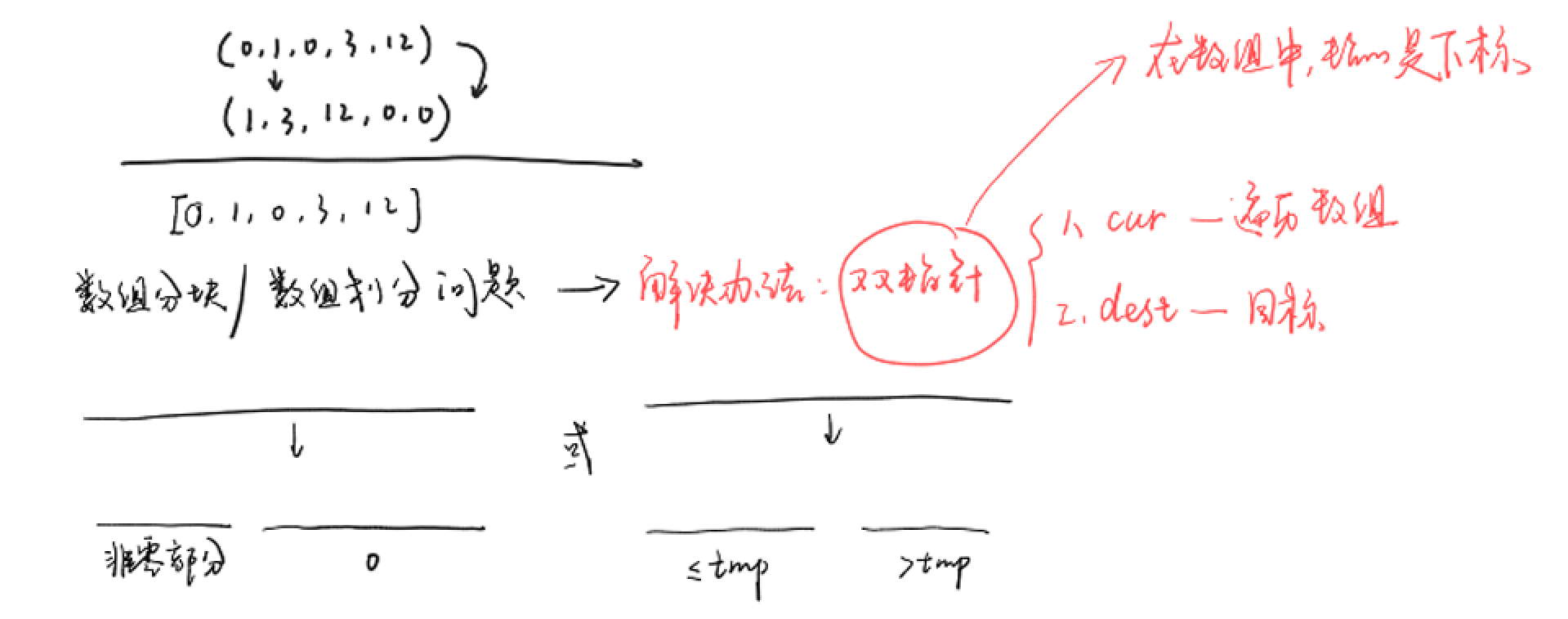 2.cur去找非零元素,找到了dest++,交换cur和dest的值;