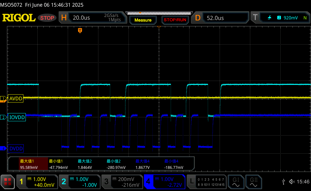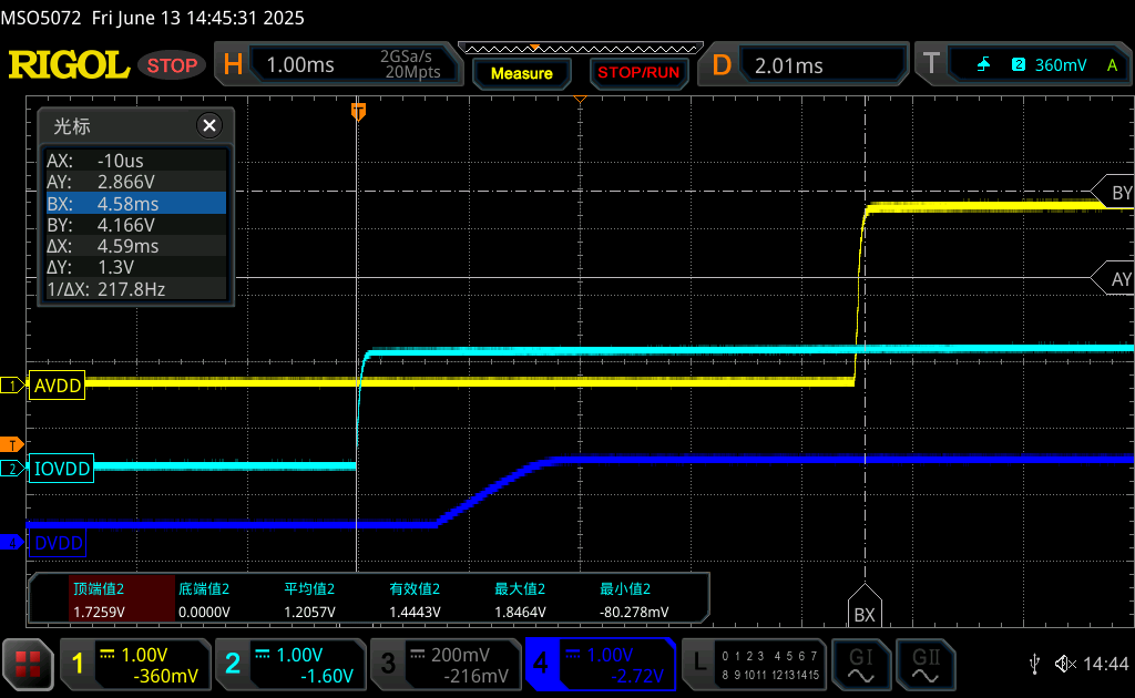 -》采用外部LDO控制AVDD/DVDD/IOVDD输出,且硬件内部做了延时如上。即从完成3路电输出需要4.58ms。