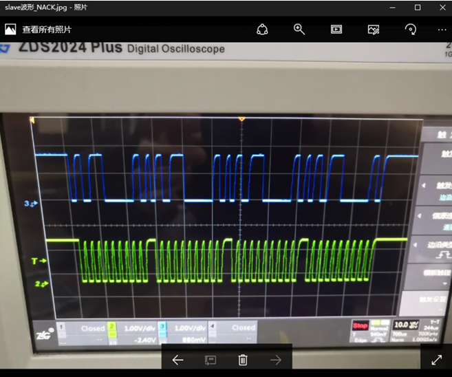 1011000(0x58) 0(w) 1(ack) 即无从设备应答响应