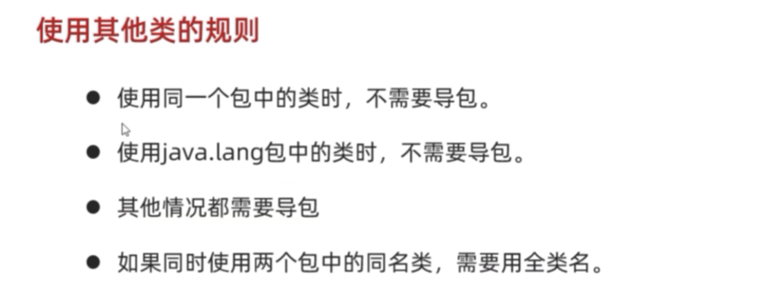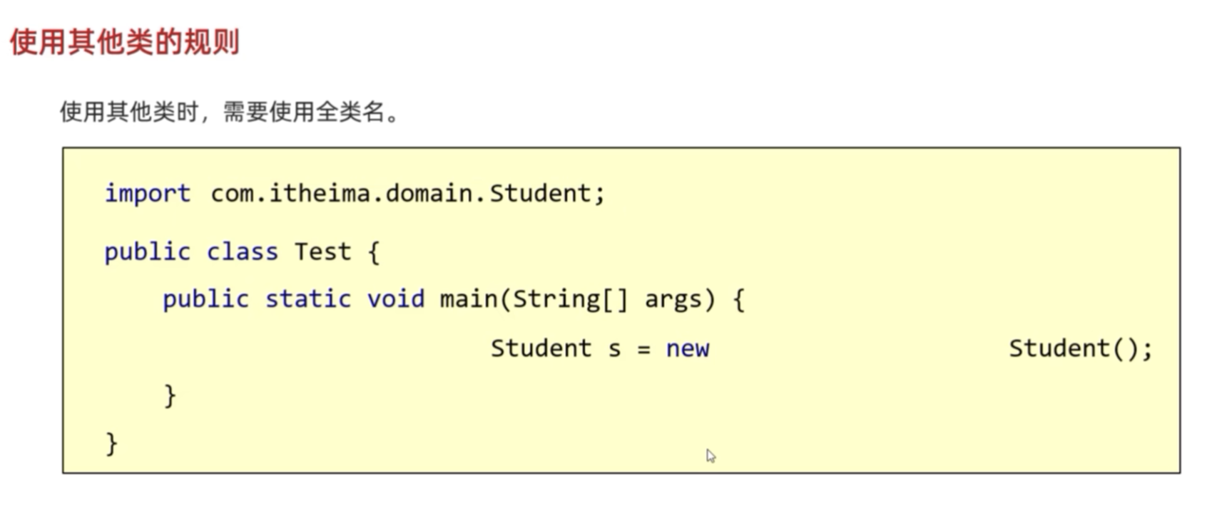 遇见相同名字但是来源于不同的包名的时候,必须指明完整的包名路径,编译器才能区分。