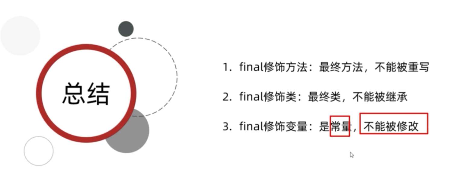 一旦用fina修饰了,表示不可被改变了,可以修饰方法、类、变量