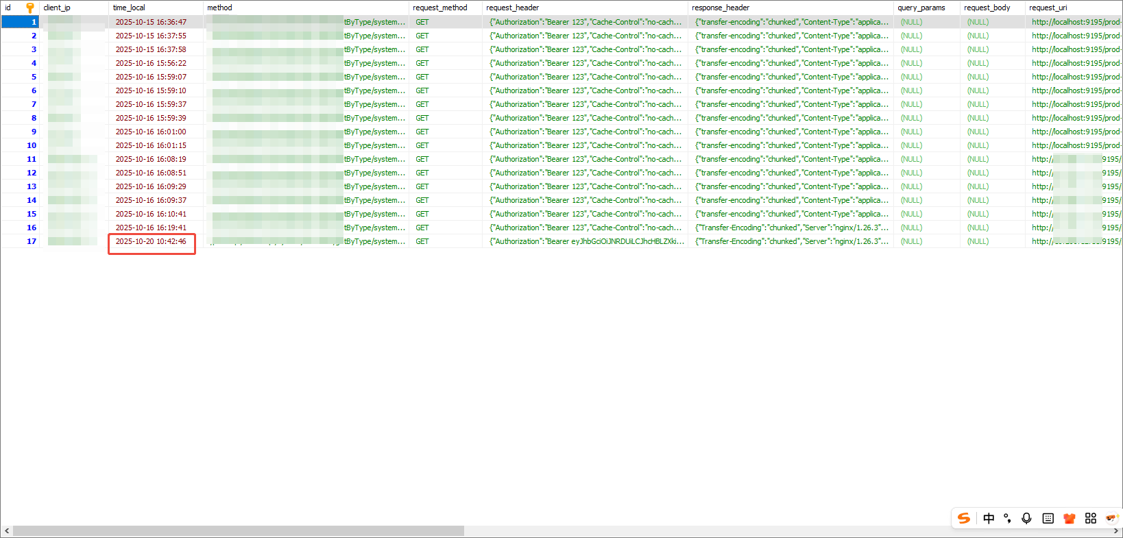 每调用一次就存入接口,记录便存到 mysql 中。