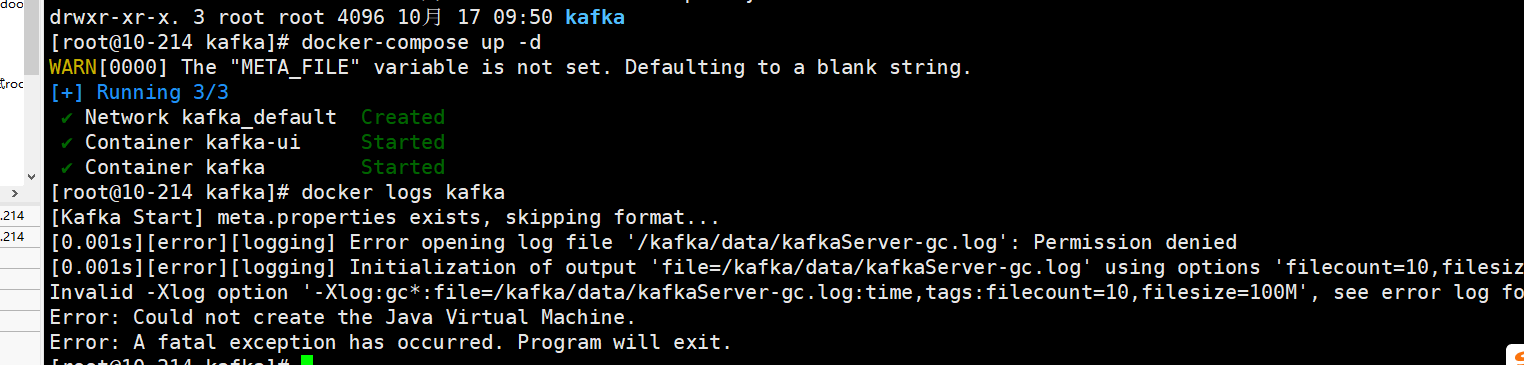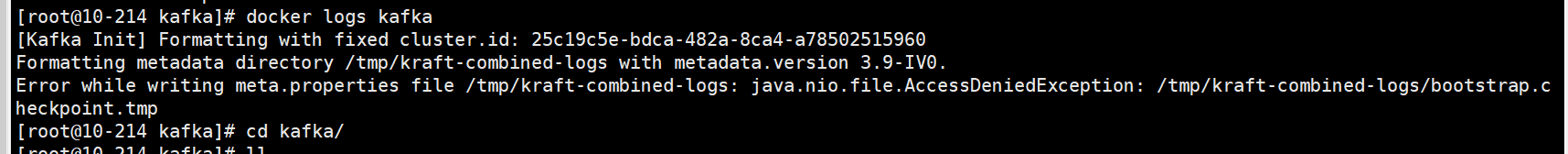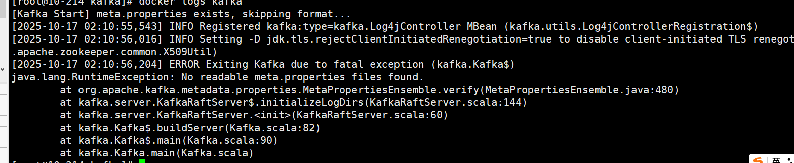 问题二:Kafka 初始化时报错无法写入 meta.properties