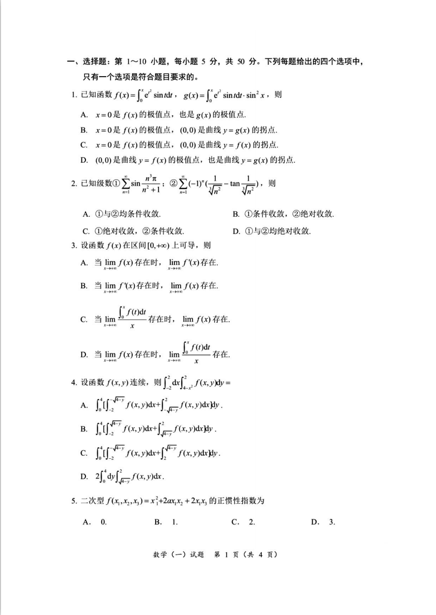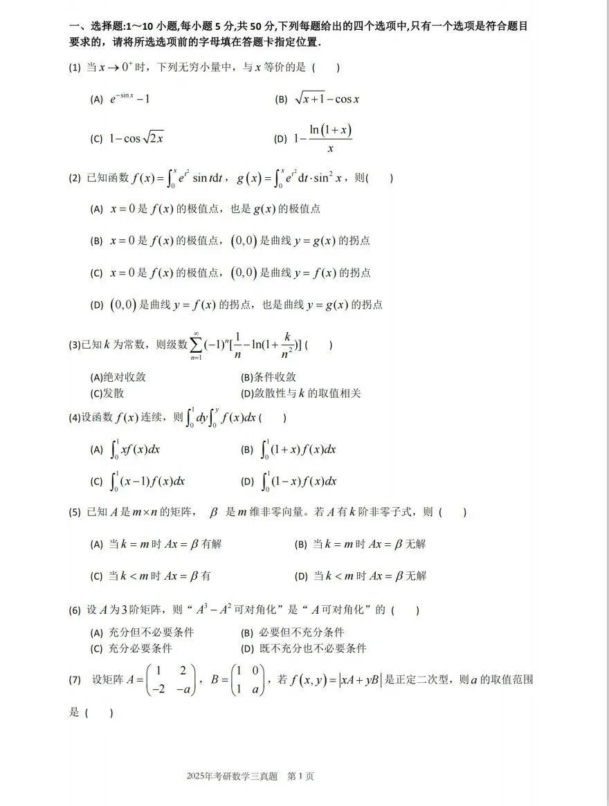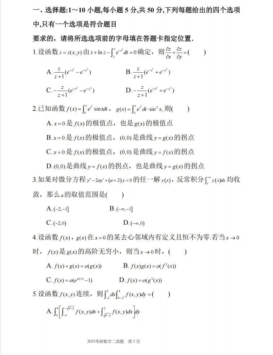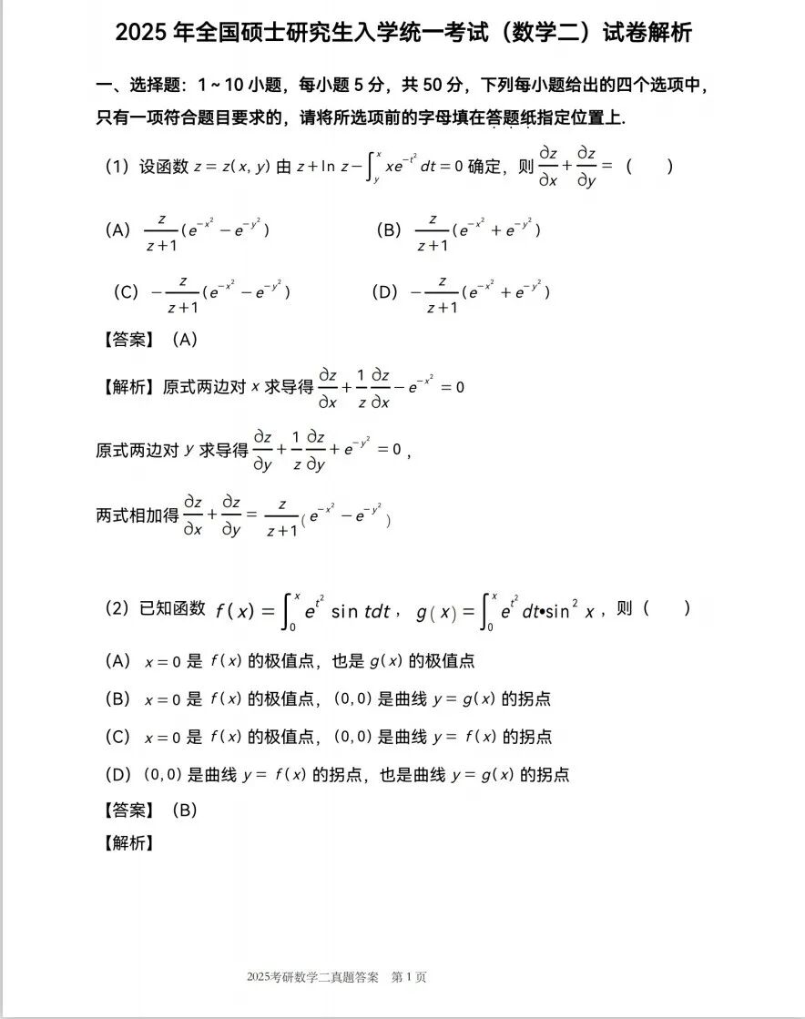 26考研数学一、二、三真题试卷及答案PDF电子版(1987-2025年)