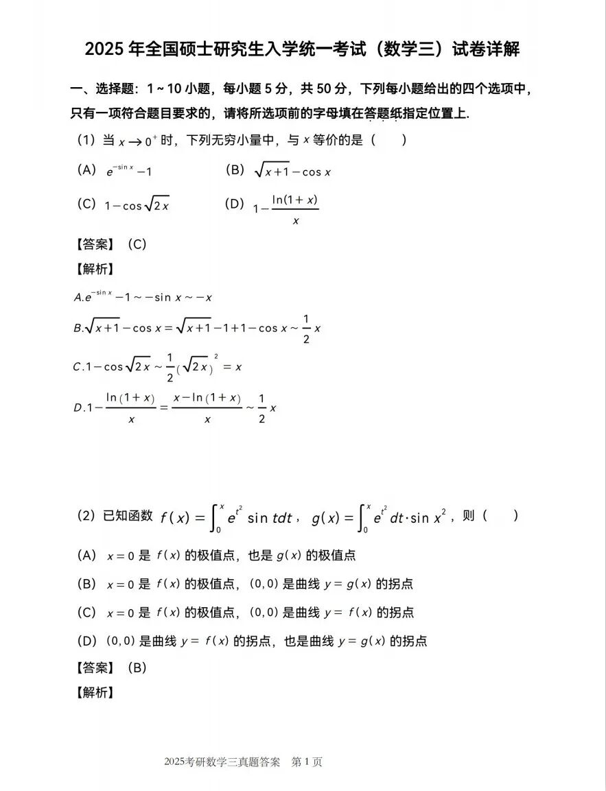 2026年全国硕士研究生招生考试即于12月20日至21日举行。今天给大家整理了最新的2009-2025年考研数学一、二、三历年真题及答案解析,PDF高清电子版,可免费下载打印。