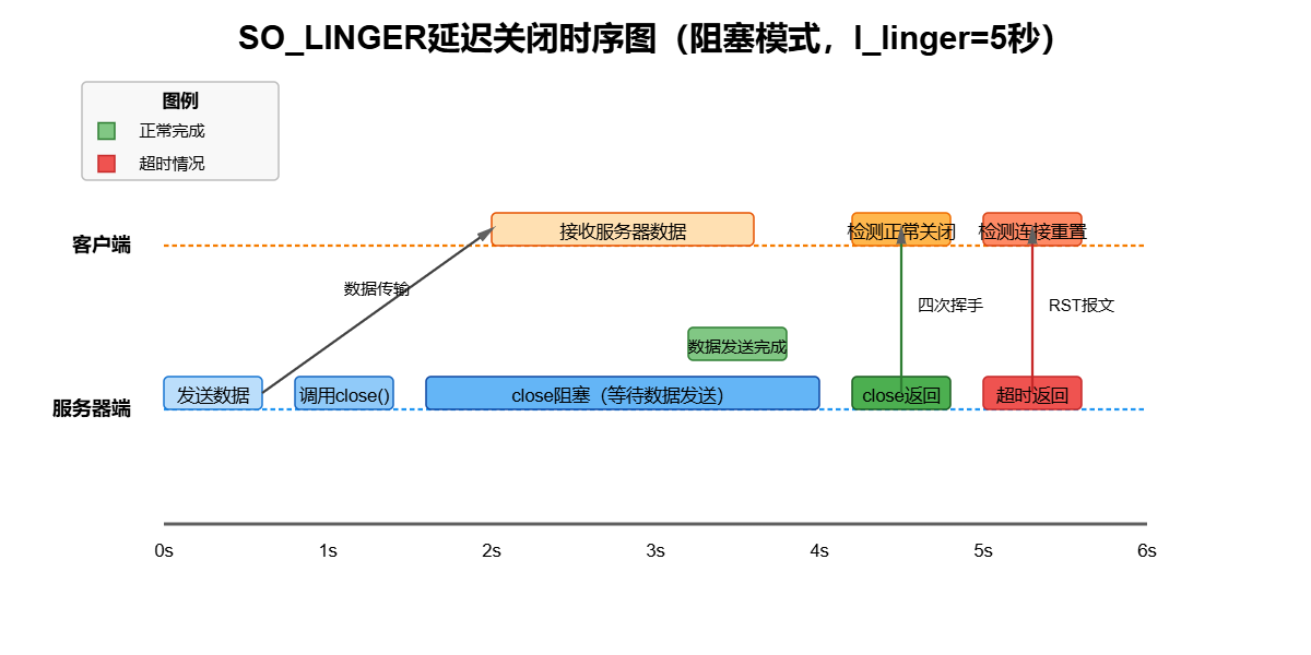 结果说明:当数据在滞留时间内发送完成,连接正常关闭;若超时未完成,内核丢弃残留数据并强制关闭连接。