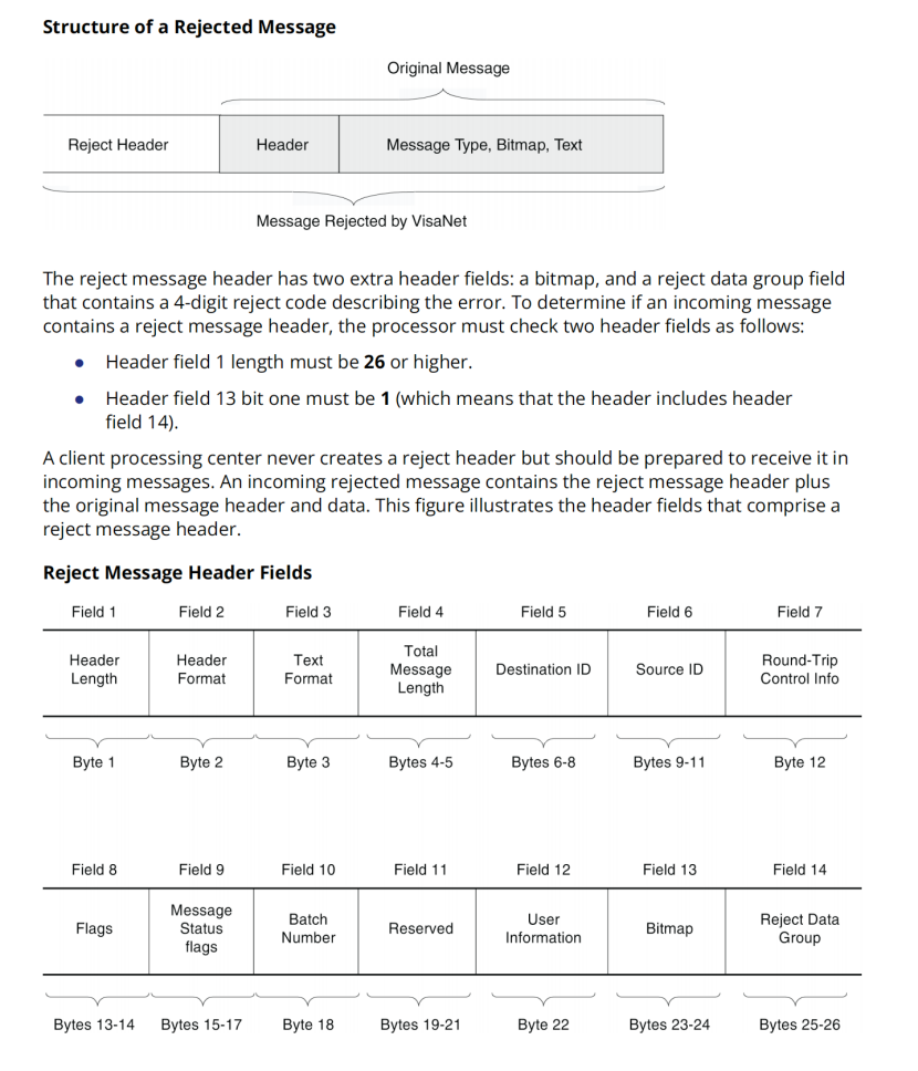 | Reject Message Header | <-- VisaNet 加的(Header field 1 length must be 26 or higher)