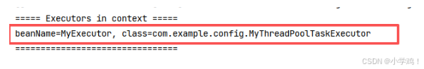 public class ExecutorInspector {@Autowiredprivate ApplicationContext ctx;@PostConstructpublic void inspect() {Map<String, Executor> execs = ctx.getBeansOfType(Executor.class);System.out.println("===== Executors in context =====");execs.forEach((name, exe) -> {System.out.println("beanName=" + name + ", class=" + exe.getClass().getName());});System.out.println("================================");}
