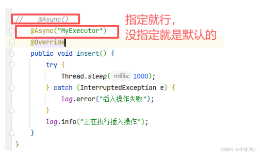 public class MyThreadPoolTaskExecutorConfig implements AsyncConfigurer { // 实现这个接口@Bean("MyExecutor")public Executor asyncExecutor() {MyThreadPoolTaskExecutor myExecutor = new MyThreadPoolTaskExecutor();myExecutor.setCorePoolSize(5);myExecutor.setMaxPoolSize(5);myExecutor.setQueueCapacity(500);myExecutor.setKeepAliveSeconds(60);myExecutor.setRejectedExecutionHandler(new ThreadPoolExecutor.CallerRunsPolicy());myExecutor.setThreadNamePrefix("ZFP");myExecutor.initialize();return myExecutor;}// 默认的执行器@Overridepublic Executor getAsyncExecutor() {return new SimpleAsyncTaskExecutor();}