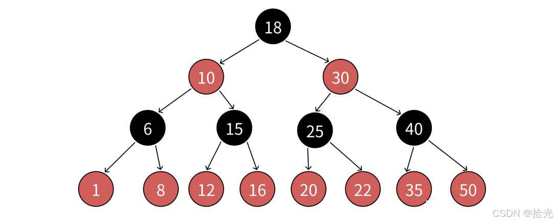 红黑树是一棵二叉搜索树,他的每个结点增加一个存储位来表示结点的颜色,可以是红色或者黑色。 通过对任何一条从根到叶子的路径上各个结点的颜色进行约束,红黑树确保没有一条路径会比其他路 径长出2倍,因而是接近平衡的。