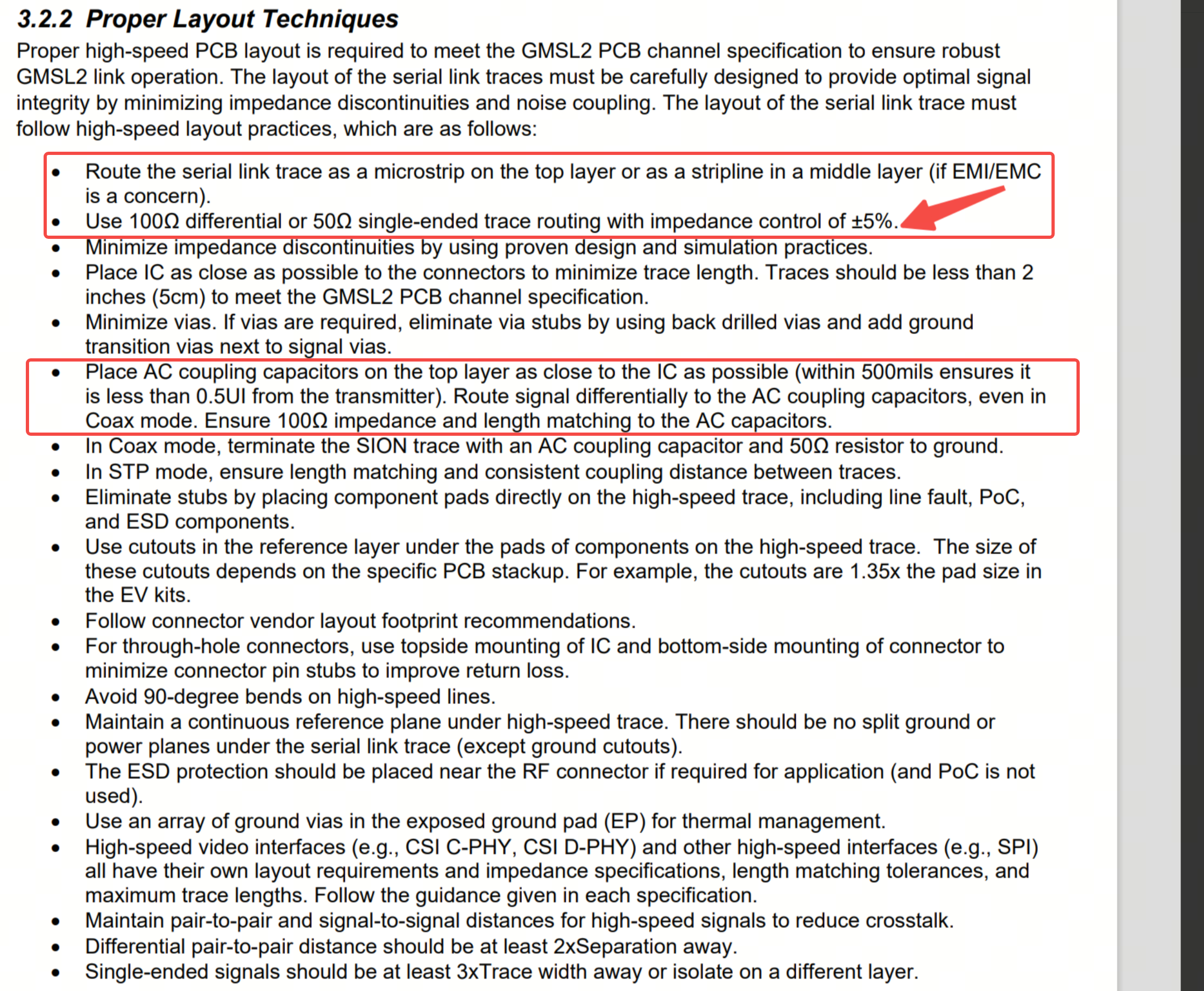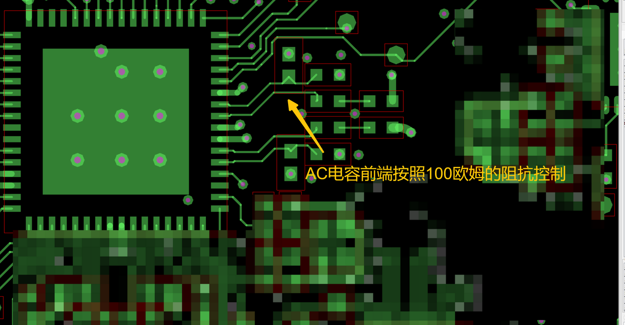 正常我们的GMSL2的网络中AC电容前端部分的走线是要求按照差分100欧姆的设计要求去做的: