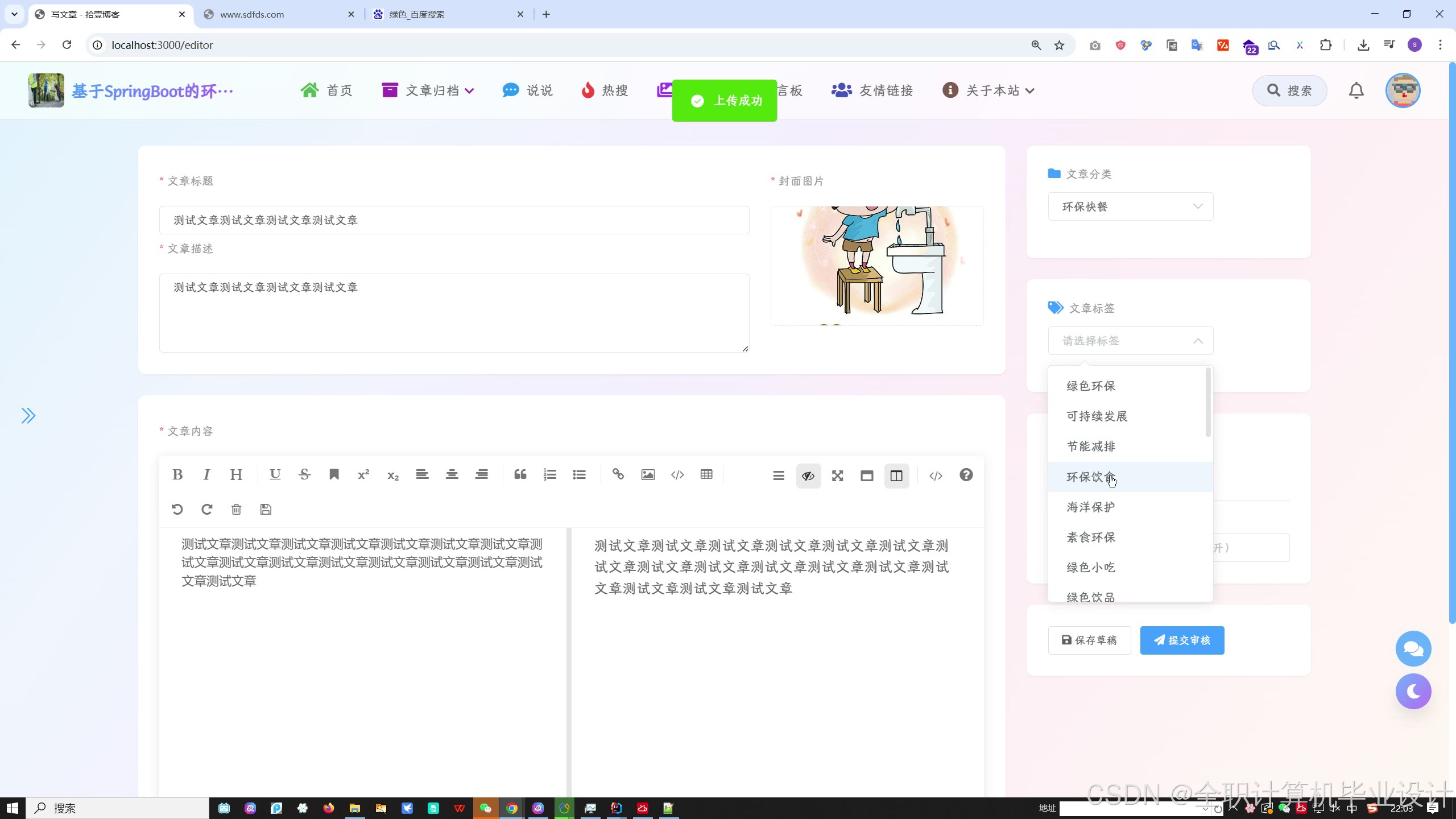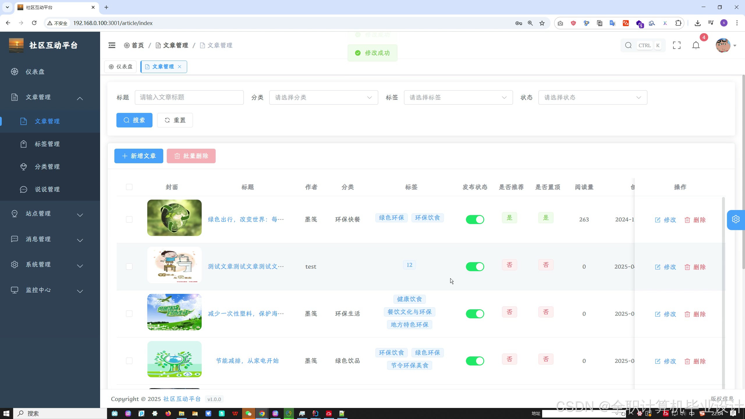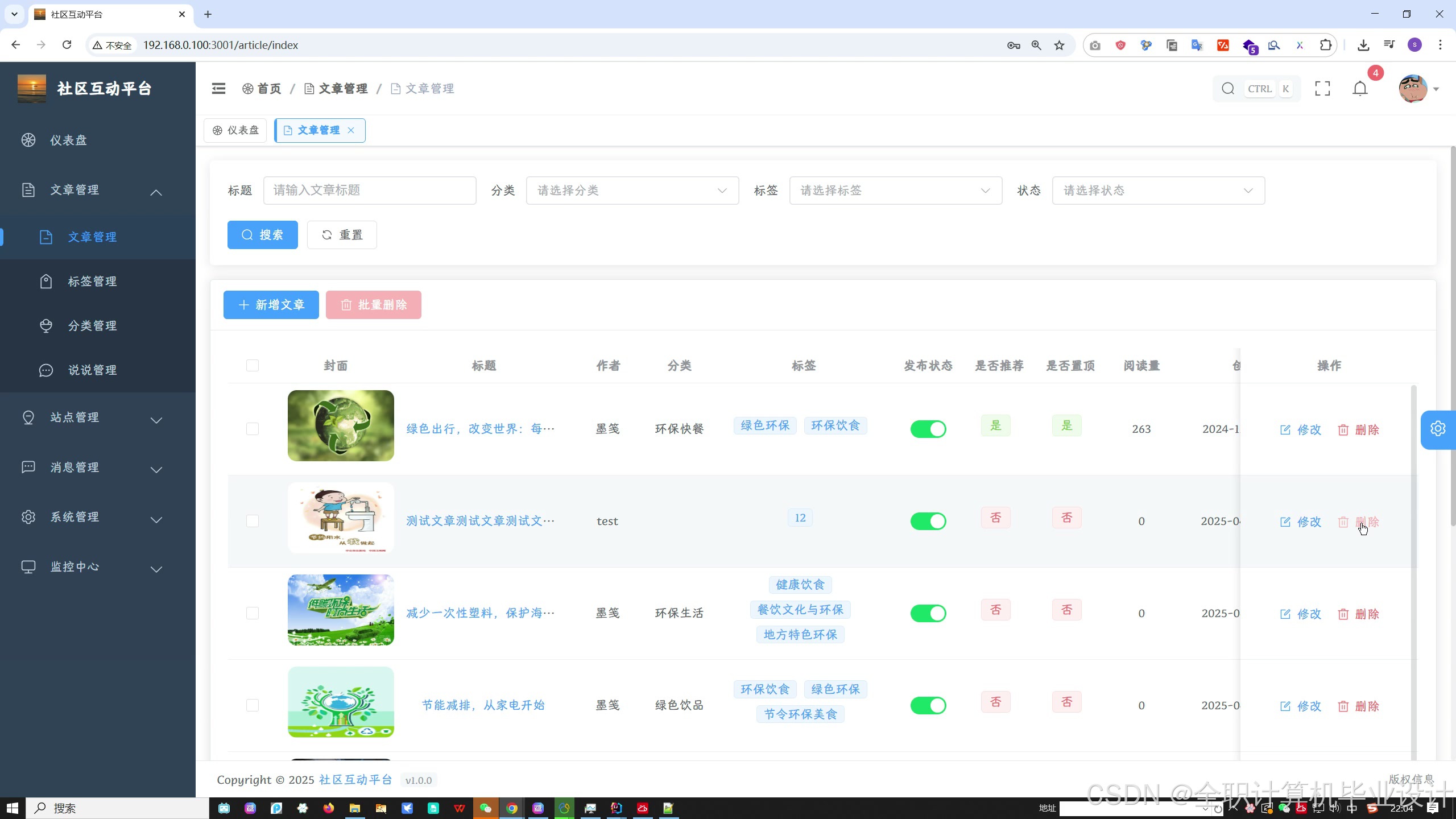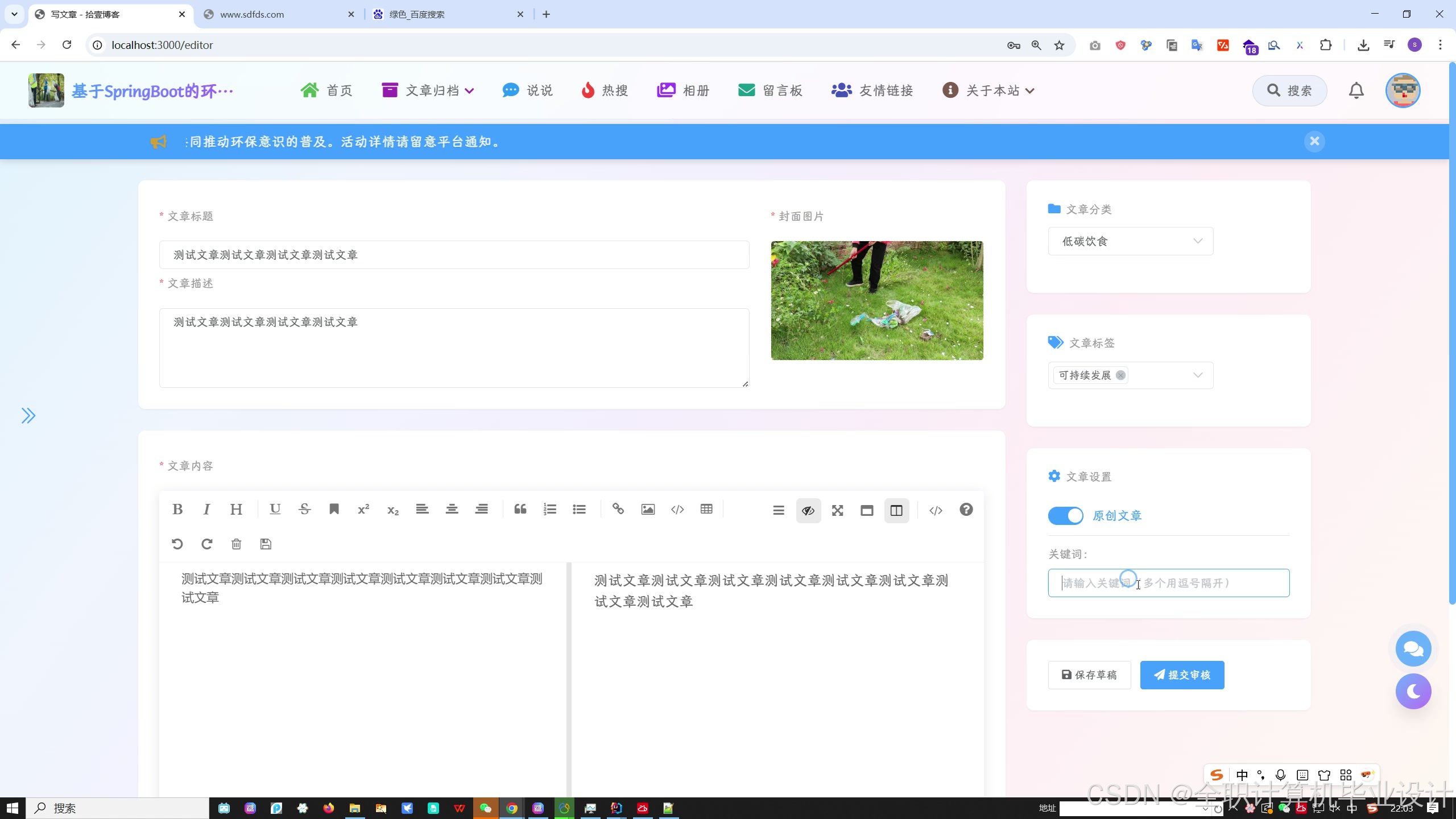 2. **文章资讯管理** - 发布和管理环保相关文章资讯