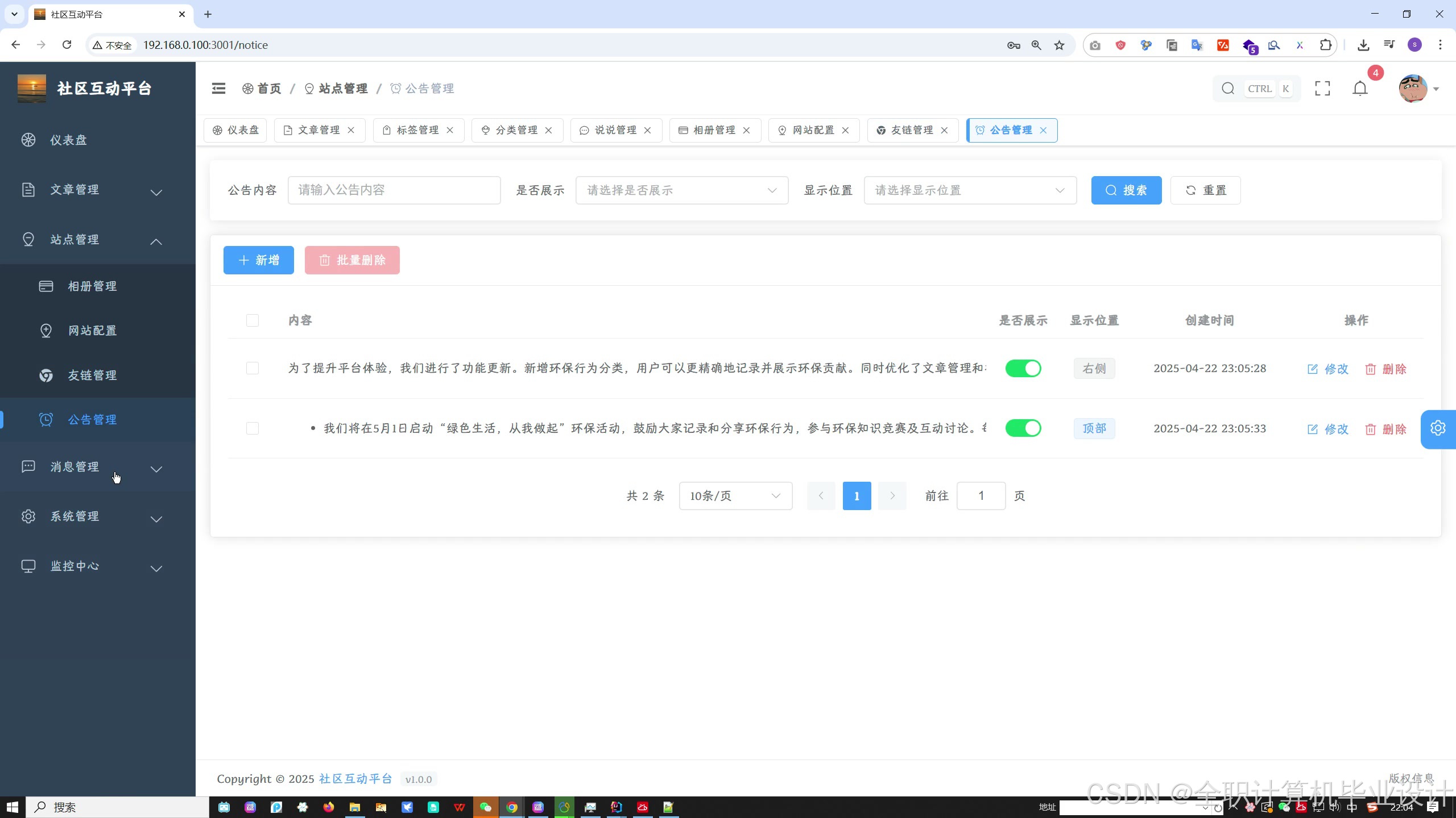 9. **留言板管理** - 管理用户留言和互动内容