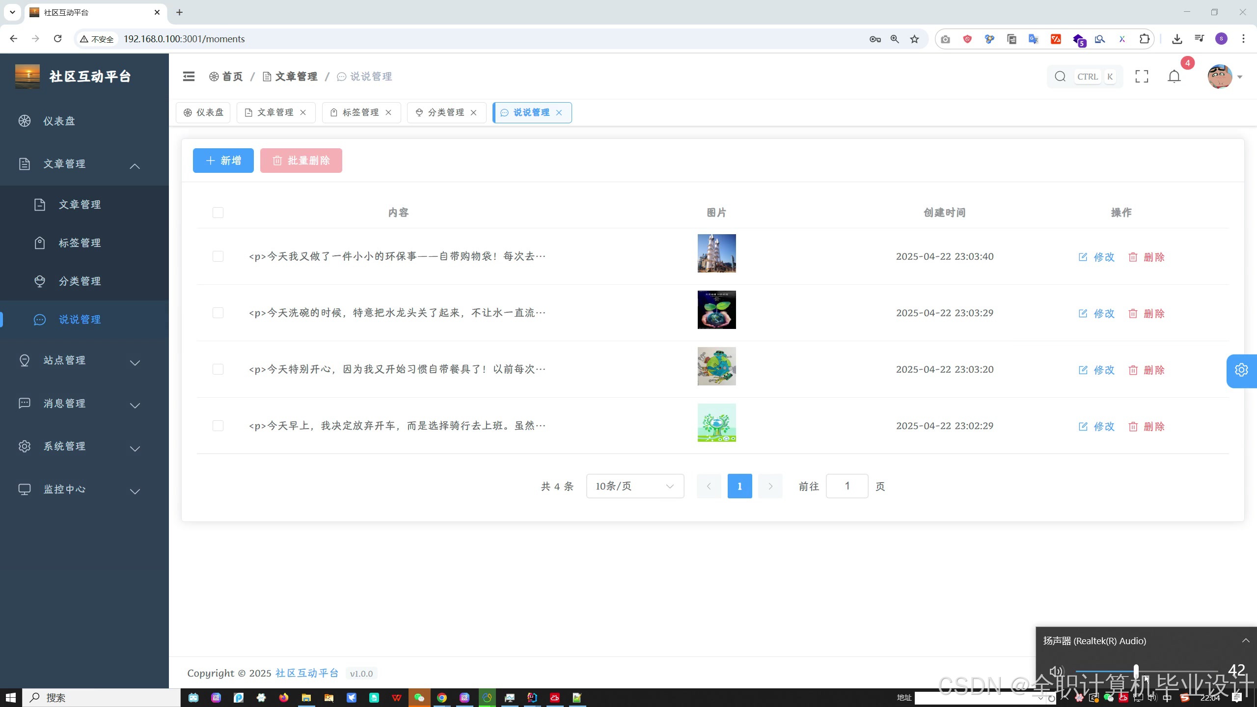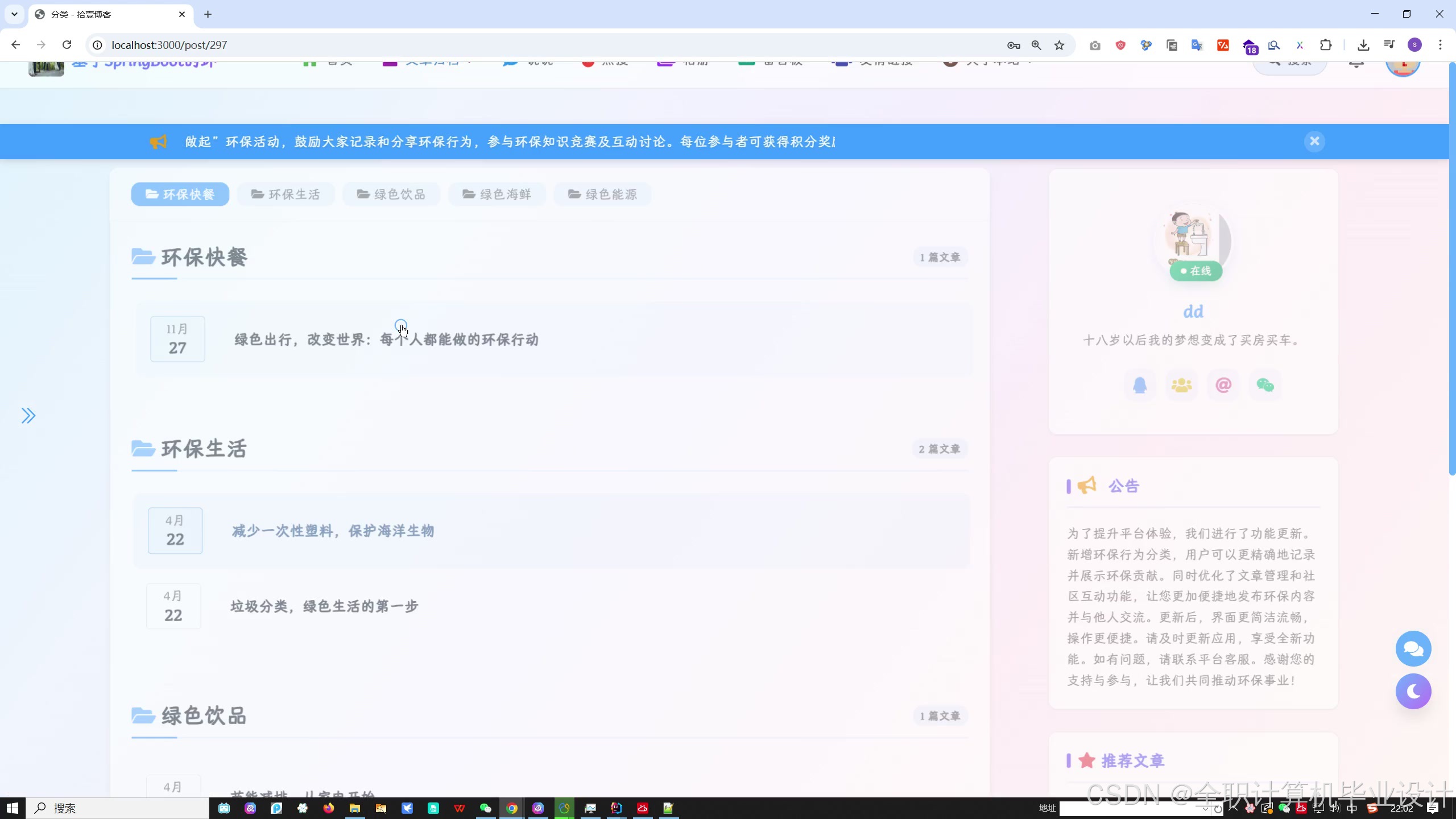 基于SpringBoot的环保行为记录与社区互动平台(Vue+MySQL)
