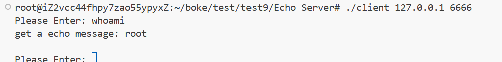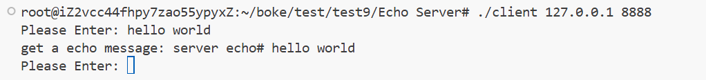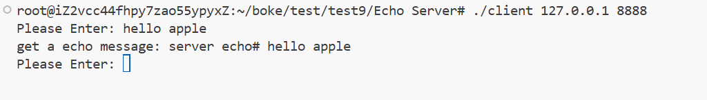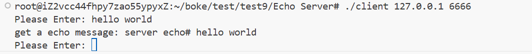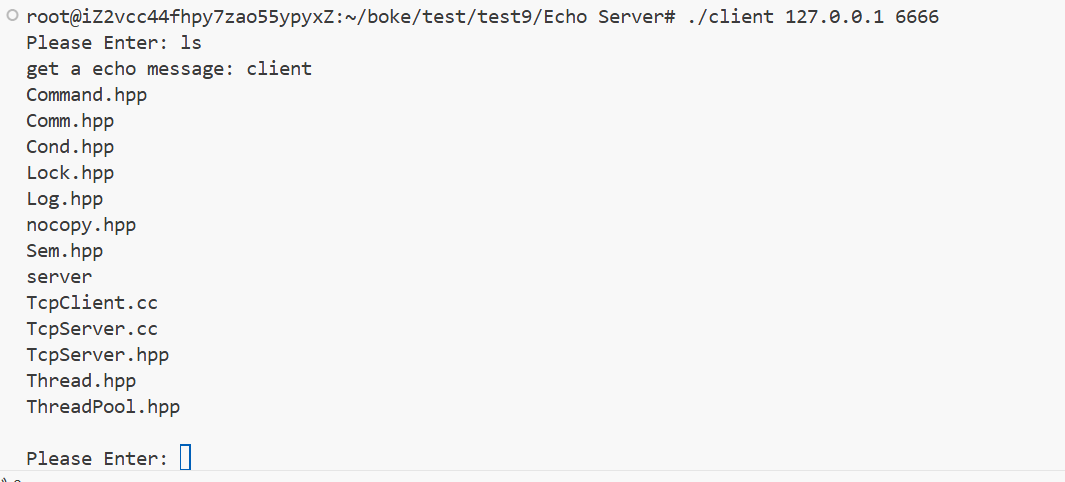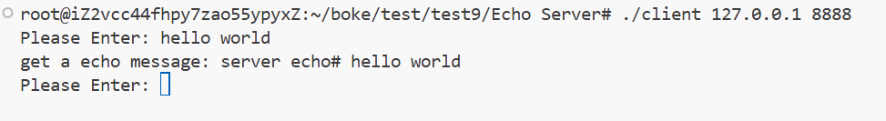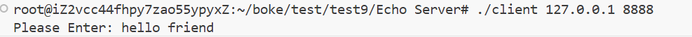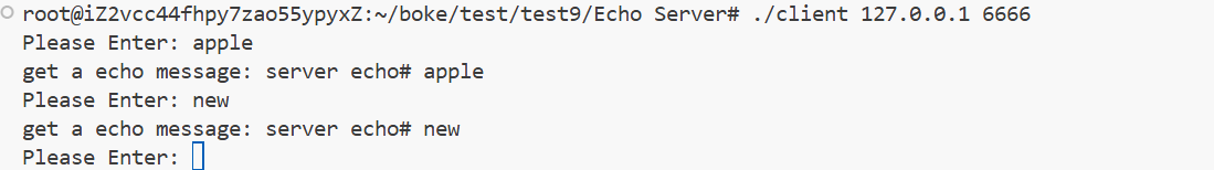 {if(argc != 3) {std::cout << "Usage: " << argv[0] << " server_ip server_port" << std::endl;return 1;}uint16_t port = std::atoi(argv[2]);std::string ip = argv[1];int sockfd = socket(AF_INET, SOCK_STREAM, 0);if(sockfd < 0) {std::cerr << "create socket error" << std::endl;return 2;}// 跟UDP一样,需要bind,但不需要用户显示bind,client系统随机端口// 发起连接时,client会被系统自动进行本地bind// connectstruct sockaddr_in server;memset(&server, 0, sizeof(server));server.sin_family = AF_INET;server.sin_port = htons(port);inet_pton(AF_INET, ip.c_str(), &server.sin_addr);int n = connect(sockfd, CONV(&server), sizeof(server)); // 自动bindif(n < 0) {std::cerr << "connect error" << std::endl;return 3;}while(true) {std::string inbuffer;std::cout << "Please Enter: ";std::getline(std::cin, inbuffer);ssize_t n = write(sockfd, inbuffer.c_str(), inbuffer.size());if(n > 0) {char buffer[4096];ssize_t m = read(sockfd, buffer, sizeof(buffer) - 1);if(m > 0) {buffer[m] = 0;std::cout << "get a echo message: " << buffer << std::endl;}else break;}else break;}return 0;