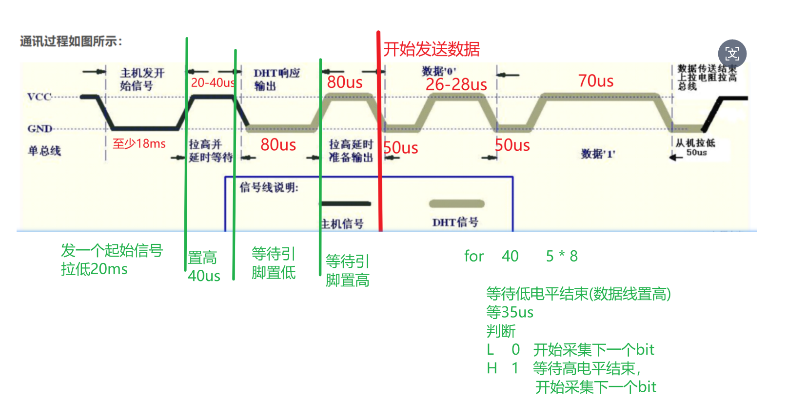 - 步骤 2:主机释放总线(拉高),等待 20~40us