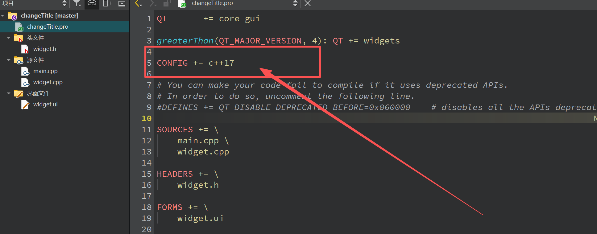 文件中手动添加或者修改CONFIG += c++11