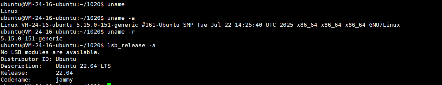 • - a或‒all 详细输出所有信息,依次为内核名称,主机名,内核版本号,内核版本,硬件名,处理