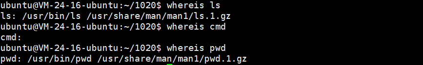 注意:whereis是在系统特定的路径下查找,即可以找到可执行的程序,又可以找到手册、安装包压缩包等