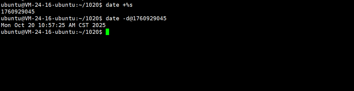 • 时间戳转成时间:date -d@时间戳(如1760929045)