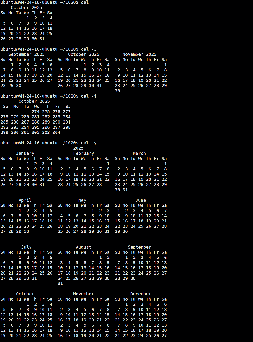 注意:可能未安装cal,需要安装使用命令:sudo apt install ncal
