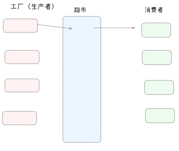 超市在这个模型中的作用,属于一个中间的交易场所,它的货架容量有限——相当于一块内存空间,是一种临界资源