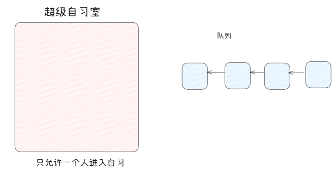 我们假设有一个超级自习室,它在同一时刻只允许一个人拿着钥匙进入自习室进行自习。