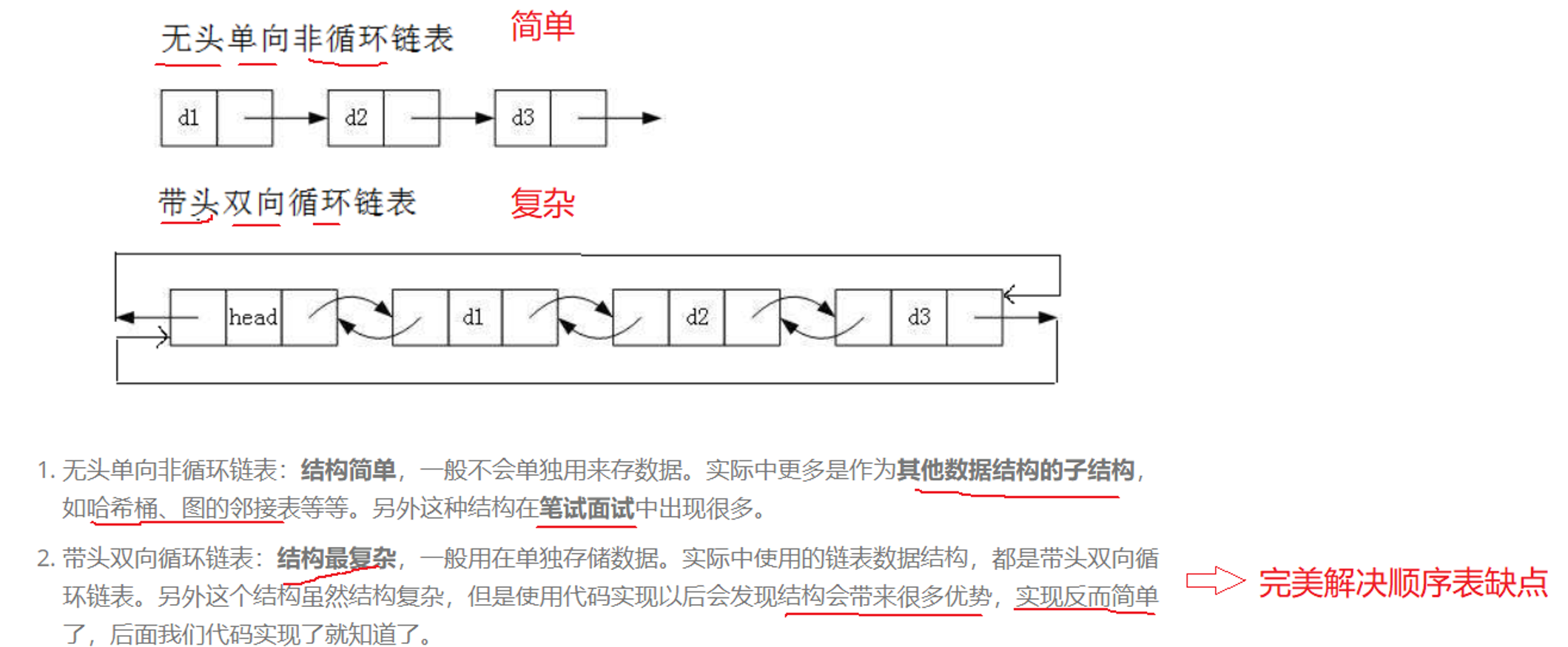 1.以结点为单位存储,不支持随机访问(有些算法不适用)