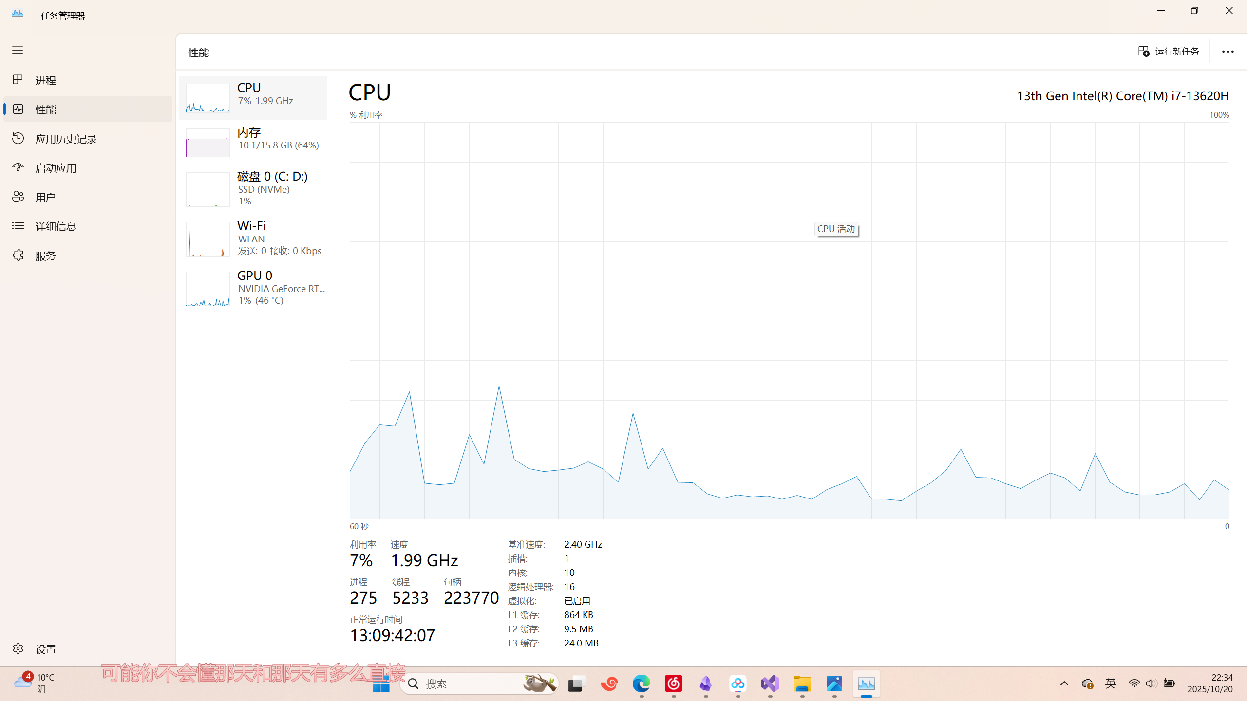 可以看到cpu性能这里有L1、L2、L3缓存,可以看到越快越小