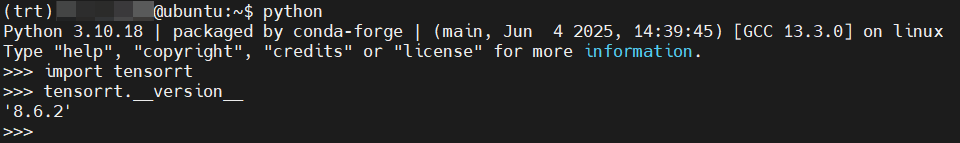 if python3 -c "import tensorrt" 2>/dev/null; thenpython3 -c "import tensorrt; print('tensorrt', tensorrt.__version__)"