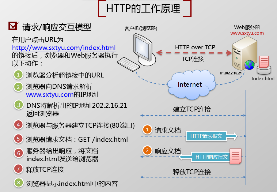 在浏览器中输入一个网站,然后回车显示出网页内容的过程。