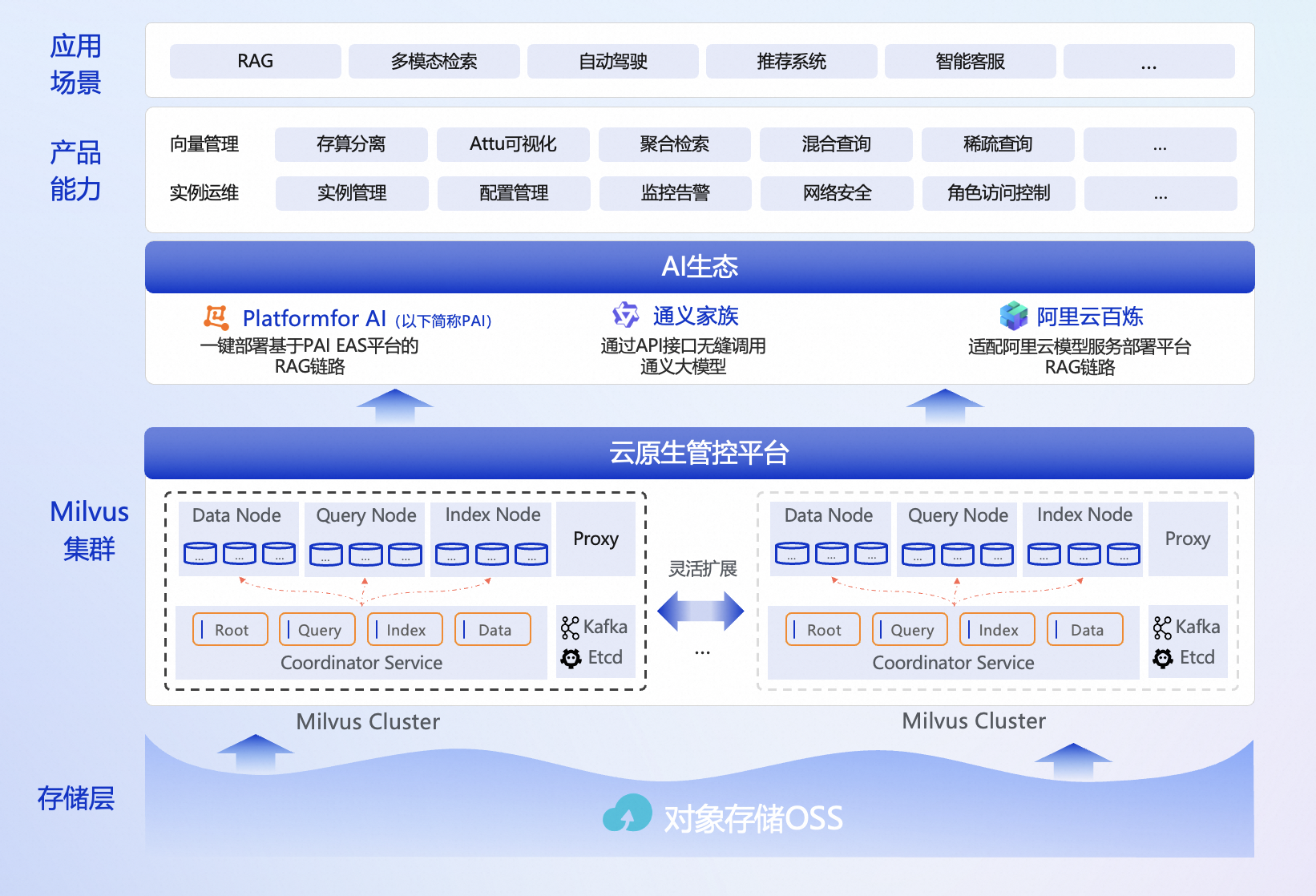 阿里云 Milvus 深度融入阿里云 AI 生态,全面支持: