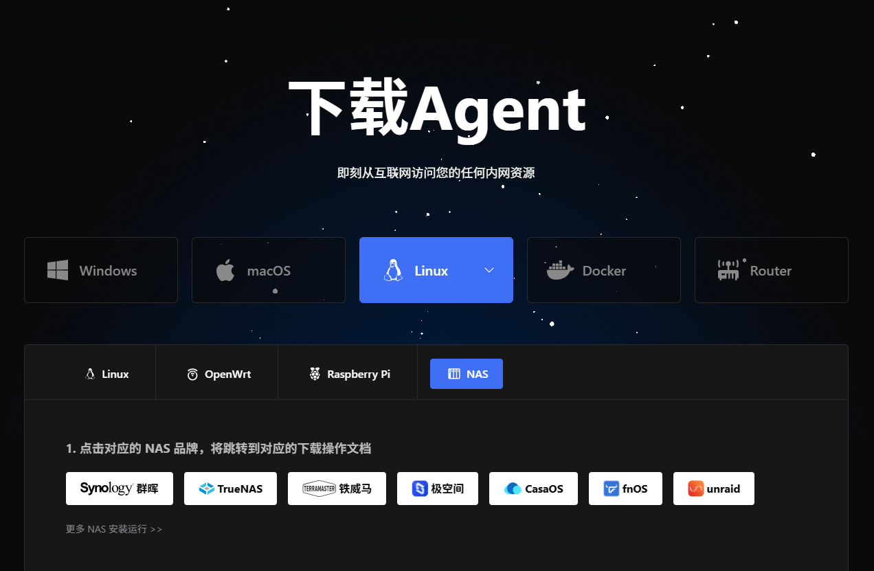 支持远程访问NAS、远程桌面、OA系统、数据库、Docker、文件共享、SSH、宝塔面板等,还支持自有域名、TLS终止、多路由策略管理、鉴权认证、IP访问控制等功能,可满足多样化的需求。