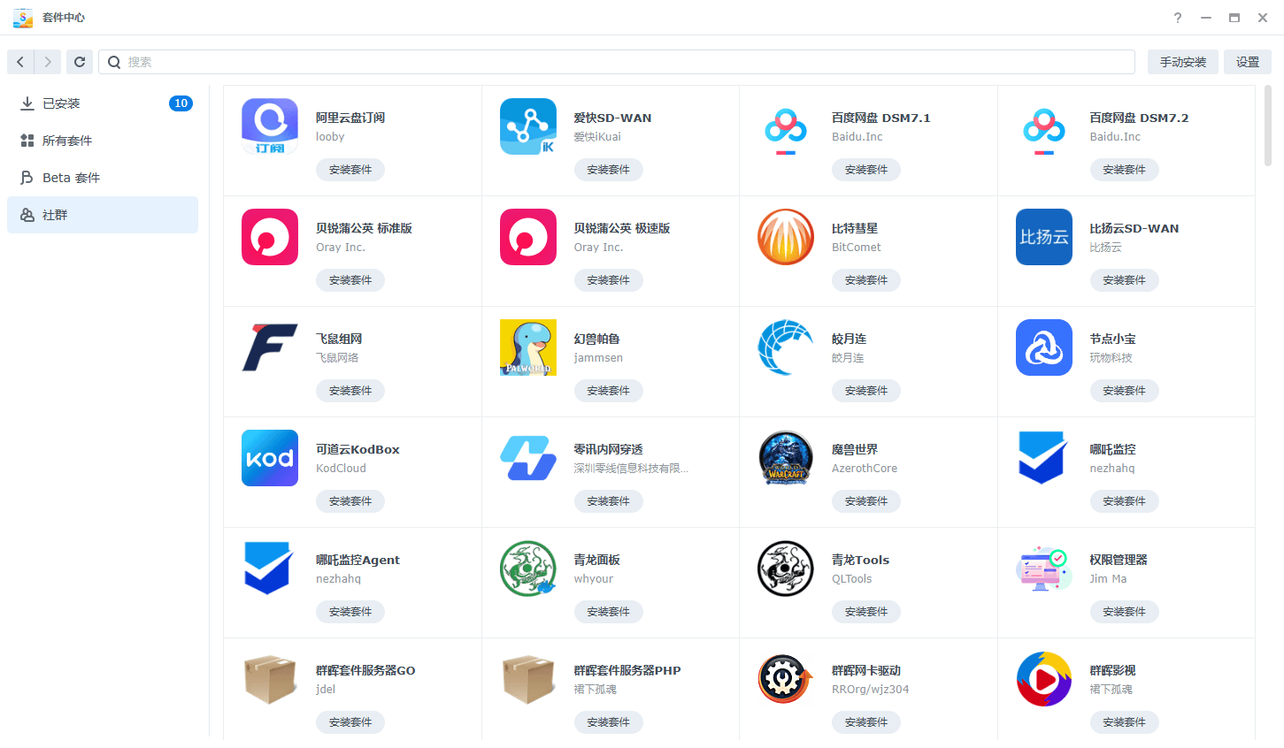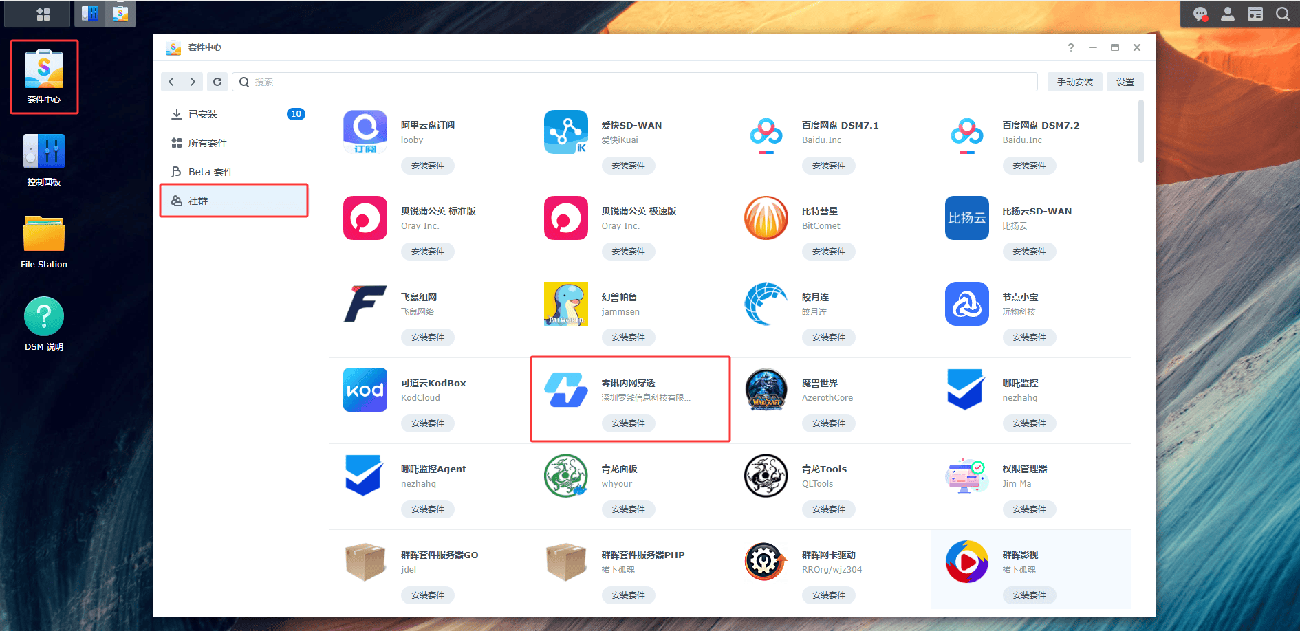 1. 回到套件中心主界面,您会看到左侧多了一个 「社群」 分类。