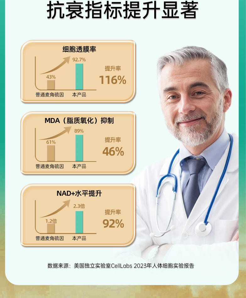- 麦角硫因:一种天然的抗氧化剂,能深入细胞线粒体(能量工厂),保护线粒体免受自由基损伤;