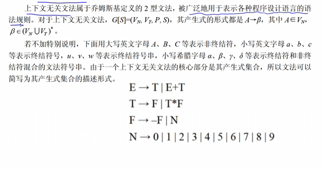 - Vn:非空有限集合的符号,每个元素称为非终结符号