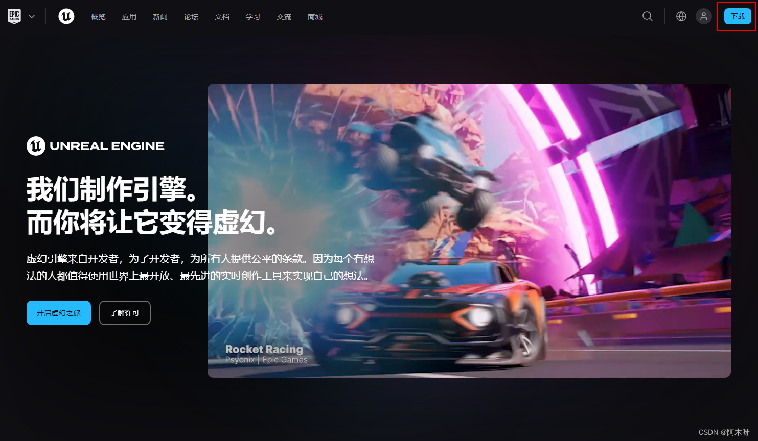 打开虚幻引擎官网(点击这里进入),点击右上角下载,然后选择适合的操作系统版本进行下载。