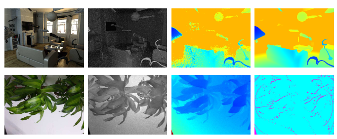 (i)视角差异:深度测量最初是从ToF传感器的角度定义的,因此需要深度图像和RGB图像之间的对齐;