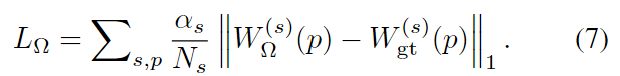 这里 W (s) Ω (p) 和 W (s) gt (p) 都是 R2 向量,Ns 表示该尺度的像素数。我们使用与FlowNetC[9]相同的权重因子αs。