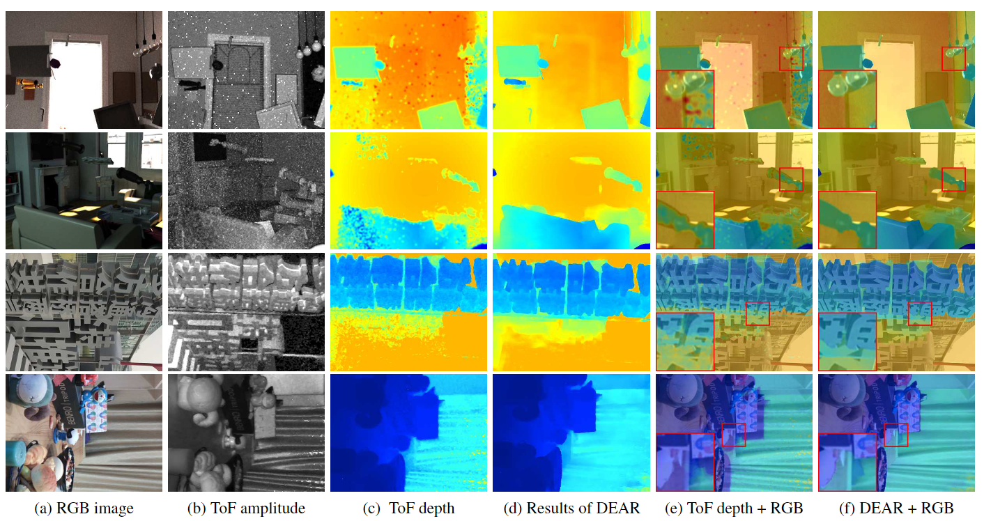 我们提出了DEAR,一种用于弱校准ToF RGBD相机模块的深度端到端对齐和细化框架。我们的对齐模块估计跨模态光流,整合来自ToF深度的信息;我们的细化模块基于专门设计的核预测网络,解决了错误的ToF深度测量。为了获得用于训练的高质量数据,我们使用计算机图形学的工具合成了一个数据集 ToF-FlyingThings3D。进行了综合实验以证明我们的建议的有效性。