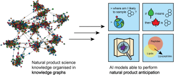 例如,通过知识图谱,可以关联串联质谱碎片模式与代谢构建模块,甚至预测微生物群落中的天然产物生物活性。这种关联能力使得知识图谱成为AI模型理想的训练基础,助力实现天然产物预判(Natural Product Anticipation)。