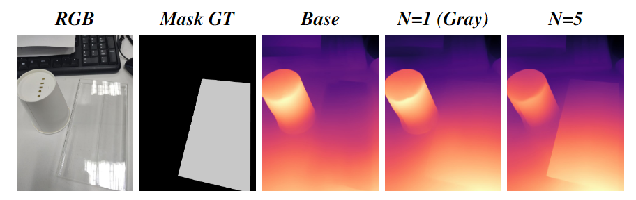 - 问题背景:传统深度估计方法(如结构光、立体匹配)在透明和镜面表面表现不佳,因光线反射/透射导致信号丢失或噪声。