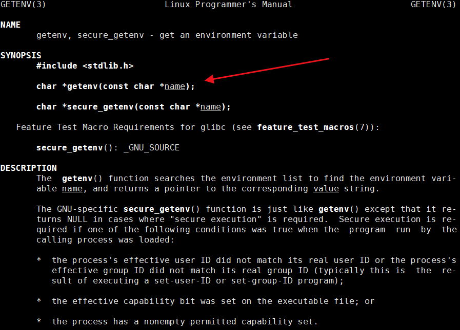 ⏩️上面的所有例子不重要,最重要的是下面这个:getenv 函数,可以通过指定环境变量的名字来获取指定环境的内容。