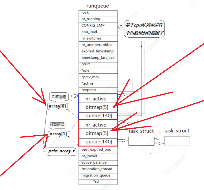 ⏩️实际上,上面 prio_arry_t 操作系统是有两套的,他们都放到一个叫 struct prio_arry_t arry[ 2 ] 数组里面。