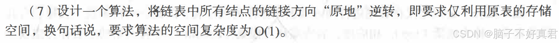 // 函数功能:逆置带头结点的单链表 // 参数说明:L - 带头结点的单链表(引用传递) void inverse(LinkList &L) {// 初始化指针LNode *p = L->next; // p指向链表第一个结点L->next = NULL; // 将头结点的next置空,准备重建链表// 遍历原链表,逐个结点逆置while (p != NULL) {LNode *q = p->next; // q临时保存p的后继结点// 将当前结点p插入到新链表的头部(头结点之后)p->next = L->next; // 将p的next指向原头结点的后继L->next = p; // 头结点指向新的首元结点p = q; // p移动到原链表的下一个结点} }