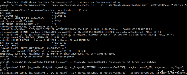strace /usr/local/sersync/sersync2 -r -o /usr/local/sersync/confxml.xml