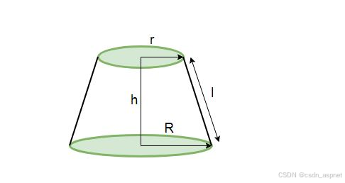 其底部为圆形,半径为 R,上部为圆形,半径为 r,高度为 h,斜高为 l