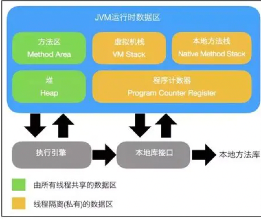 - **本地方法栈**(Native Method Stack):类似于虚拟机栈,用于存储本地方法的调用信息,通常在使用JNI(Java Native Interface)时使用。