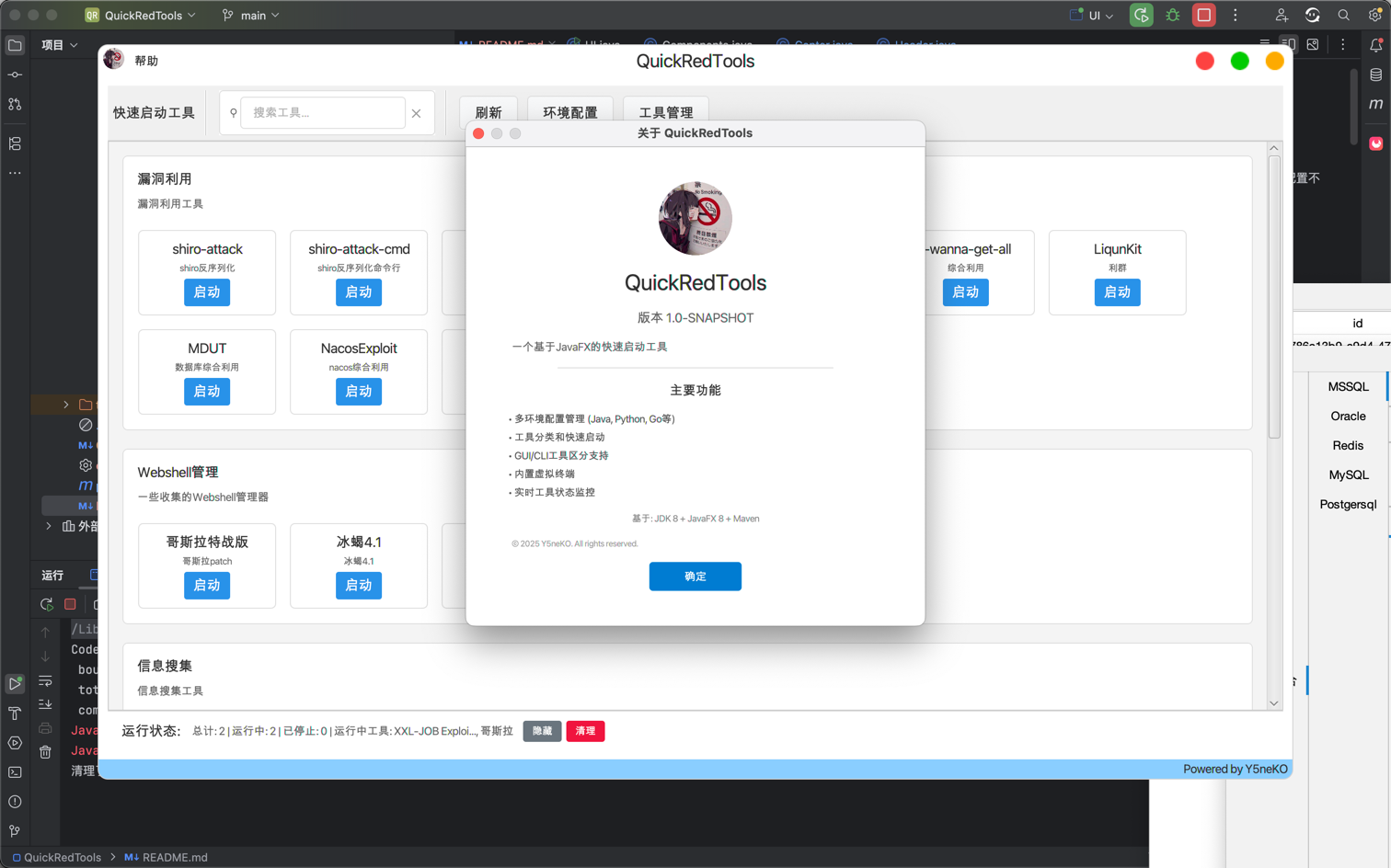 QuickRedTools 是一个基于JavaFX开发的快速启动工具,允许用户配置不同的开发环境(Java、Python、Go等)并快速启动各种工具。