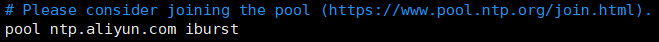 pool 服务器主机域名或者ip iburst #要连接的时间服务主机